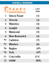 新一期加拿大大學排名加拿大時間11月10日出爐,此次排名跟過去一年的名次沒有什么特別的區(qū)別,從名次山只是作了微調(diào),沒有特別的浮動,醫(yī)博類波動比較大的是皇后大學(Queens University)從第三名降到第五。綜合類沒有任何的變化,只是增添了一所新的大學QUAM。而基礎類排名也沒有什么的變化。這已經(jīng)麥克琳雜志第20年出版加拿大大學排名,可以說今年的排名變化最少的一次,也是最沒有新意的一次。加拿大留學網(wǎng)(學在加拿大)對排名進行了整理,以下是具體的排名。