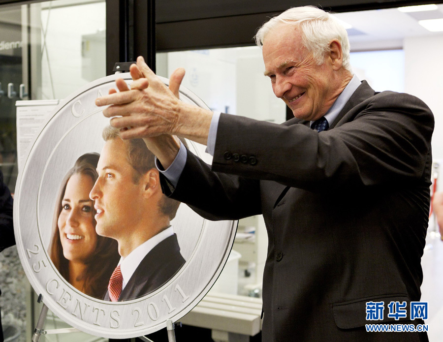 4月6日,在加拿大首都渥太華的加拿大皇家造幣廠,加拿大總督戴維·約翰斯頓出席英國威廉王子結(jié)婚紀念幣發(fā)行儀式。