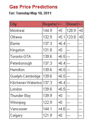 國際原油價(jià)格9日勁升5.37美元,各石油公司紛紛據(jù)此提升汽油零售價(jià)。油價(jià)觀察家麥克提格預(yù)測,大多倫多地區(qū)的普通無鉛汽油售價(jià)將在10日零時(shí)起躍升6.5分,從而以每公升1.396元創(chuàng)造新的油價(jià)紀(jì)錄。