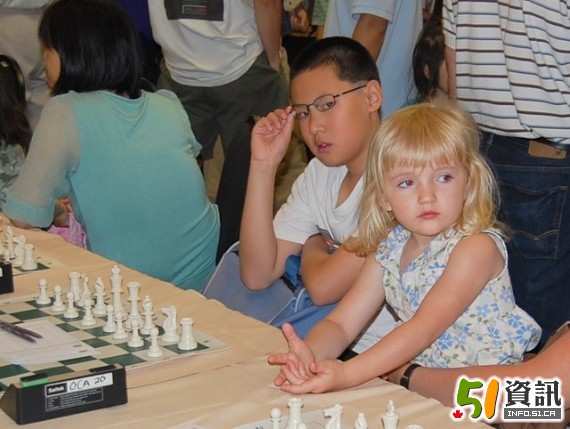 7月6日,2011 年CYCC 國際象棋加拿大全國少年錦標(biāo)賽在Richmond Hill希爾頓大酒店舉行,300多名來自全國10個(gè)省的少年棋手云集一堂,在未來的四天里一決雌雄。在比賽現(xiàn)成記者看到,超過一半的小棋手為華裔,而且曾獲國際比賽前三名的棋手均為華裔。