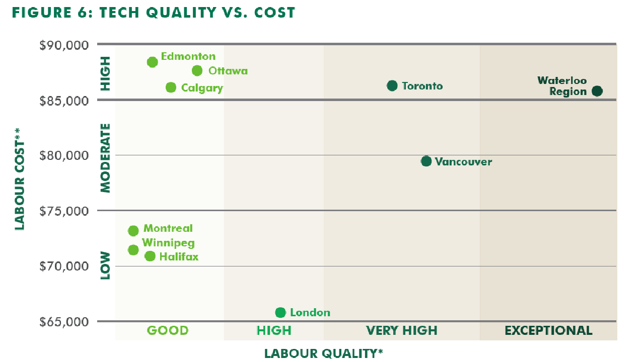 ♦ 縱觀加拿大,滑鐵盧地區(qū)在科技人才質(zhì)量和雇員收入兩個(gè)維度上均處在加拿大頂尖水平。就業(yè)環(huán)境和收入決定一切,這也是為什么滑鐵盧地區(qū)是大多數(shù)學(xué)生讀工程IT相關(guān)專業(yè)的首選?;F盧就業(yè)市場(chǎng)55%的勞動(dòng)力是康尼斯托加理工學(xué)院的畢業(yè)生!
