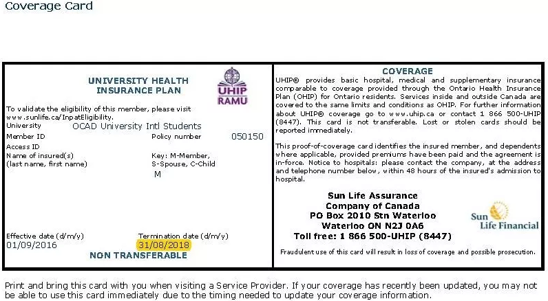 上圖是加拿大的大學留學生醫(yī)療保險(UHIP)的個人信息頁。