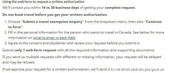 該書面授權(quán)(written authorization)是一次性使用授權(quán),確認(rèn)您不受旅行限制。它只在旅行期間有效。在得到書面授權(quán)之前,你不應(yīng)該預(yù)訂去加拿大的航班。