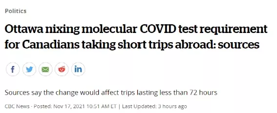 也就是說,“短途旅行”只是個時間概念,只要你是加拿大人或加拿大永久居民,3天之內(nèi)出國再回來,就無需提交72小時內(nèi)的陰性新冠檢測證明。