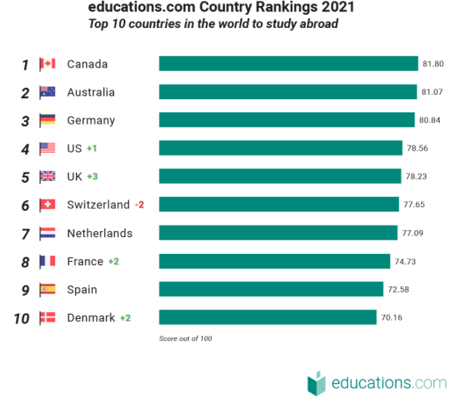 作為2021年U S News 評(píng)比的世界最好國家排名中第一的國家,和被educations.com評(píng)選的最適合留學(xué)的國家排名中第一的國家,加拿大本身就對國際留學(xué)生具有極大的吸引力。