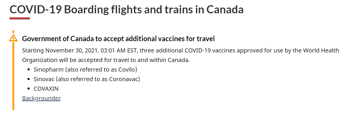 此前,加拿大政府發(fā)出官方消息稱從11月30日起,所有需要在加拿大境內(nèi)搭乘飛機或火車的旅客,必須要完全接種加拿大認可的疫苗14天后,才會被允許登機或乘車。就在我們憂愁這項政策即將如何實施的時候,峰回路轉(zhuǎn)...