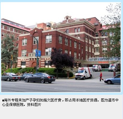 香港近期飽受大陸孕婦占用醫(yī)療資源問題困擾。一些不具加國公民及移民身分的海外孕婦到加國分娩,據(jù)報(bào)近年趨升,大溫移民團(tuán)體、律師及醫(yī)生多稱此舉并不違法,如果依例付費(fèi)無可厚非。但政府及相關(guān)部門應(yīng)設(shè)法阻止故意賴賬、占用醫(yī)療資源現(xiàn)象,指此舉對納稅人不公平。另有醫(yī)生建議規(guī)范管理本地的月子中心,以免造成醫(yī)療事故。